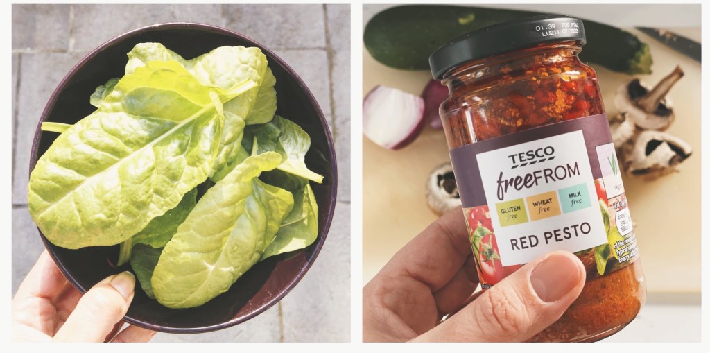 It seems most high street supermarkets stock their own brand or a well known brand of puff pastry which is joyfully – accidentally vegan! It has a pretty decent shelf life on it and can also be frozen, so it’s easy to always have at home. I generally use a ready made pesto sauce (again vegan options are in most supermarkets and have a long shelf life) but also sometimes make my own and batch freeze so this can also be used for the pinwheels.