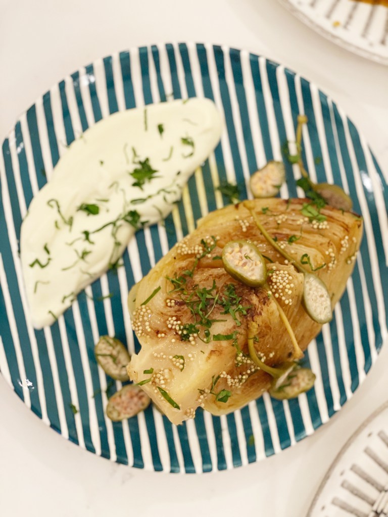 The flavours for this were delicious. The almond cream really complimented the cabbage and other flavours used. It was lovely to use new (to me) ingredients like caperberries.